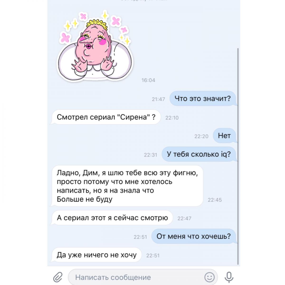 Тупость - это что она с тобой вообще общалась после всего твоего позорного поведения.