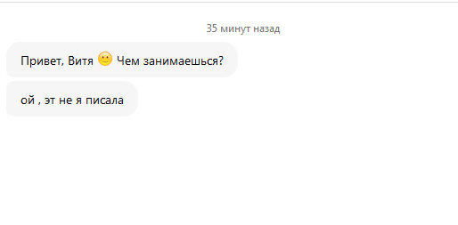 Хм, в моем случае никто не оправдывался что не она писала и чем занимаешься писали вторым сообщением, а сначала привет, имя!